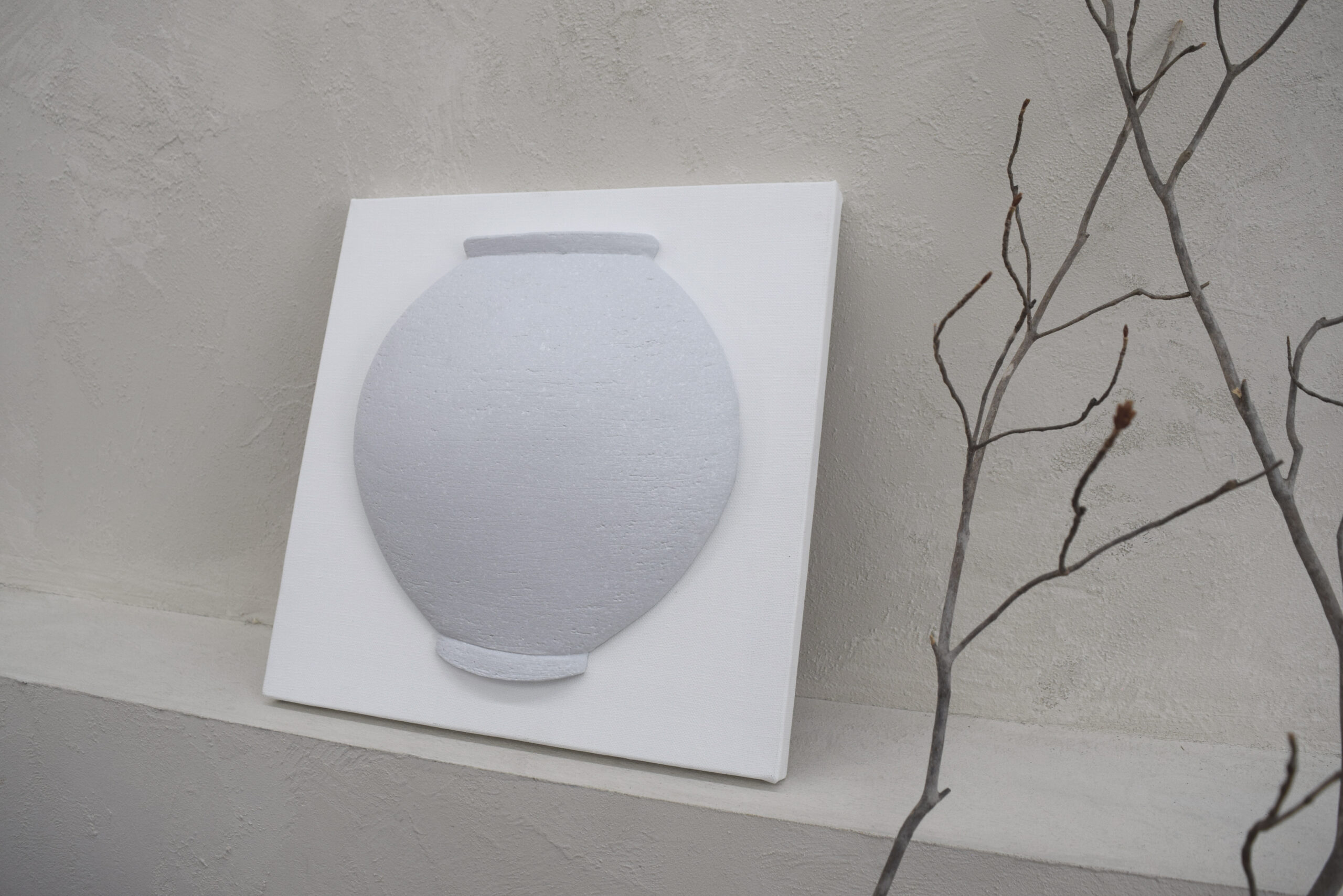 과거의 달항아리가 흙과 불, 장인의 혼이 깃든 온전한 입체 자기로서 우리 삶의 희로애락을 품어주었다면, 오늘날의 반부조 달항아리는 벽에 걸린 액자 속에서 입체감을 부여받아, 여전히 그 고유한 아름다움과 상징적 의미를 현대적인 감각으로 이어갑니다.